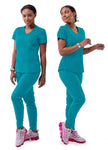 DESIGN: This Modern V-Neck Top & Yoga Jogger Pants Set Brings The Ideal Balance Between Appealing Modern Design & Unmatched Functionality To Suffice To Every Modern Nurse. Top Comes With Discreet On-Seam ID Slits, Shirttail Hem For Extra Coverage & Is Tagless For Comfort. Pants Come With A Mid-Rise Skinny Jogger Leg Fit, A Lie Flat Ribbed Yoga Waistband & A Soft Stretch Outer Drawstring.
